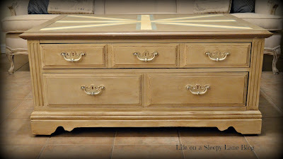 Once I got it home, I couldn't wait to get started. So, as I do with many of my projects, I enlisted the help of my sweet friend Marley. We began by painting the inner rectangle on the top with Annie Sloan Chalk Paint (ASCP) in Duck Egg and the body & drawers in Old White.